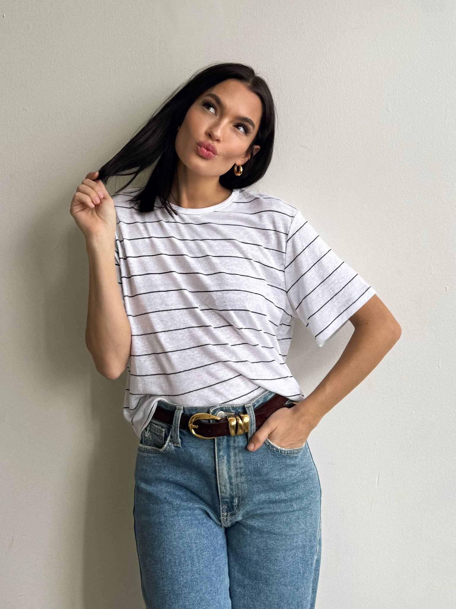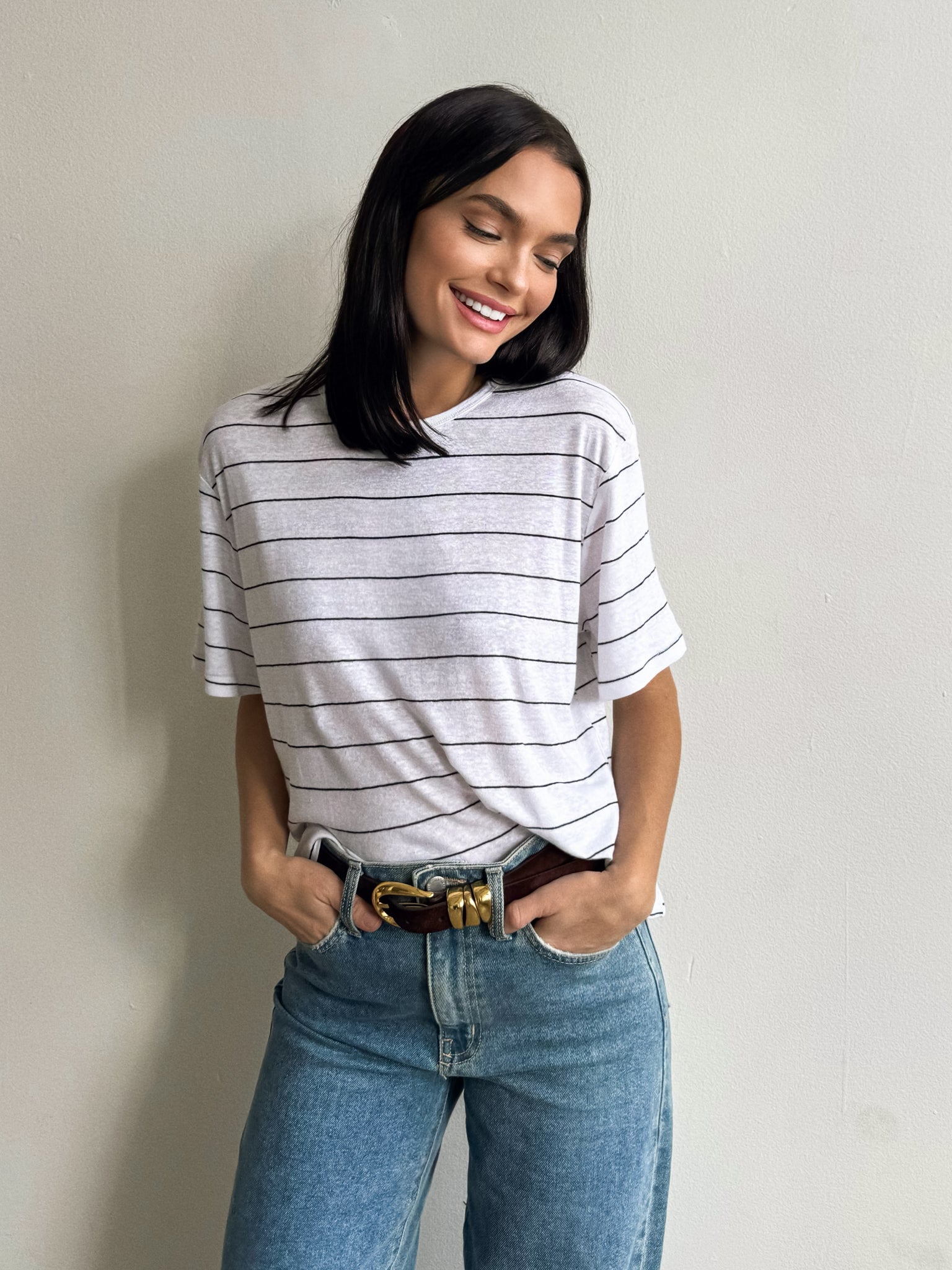 We’re going back to our basics with our new Marty Stripe Linen Top! Style this top with your favorite denim for a laidback fit. Pair with flats. sunnies. and a leather tote bag for a more elevated everyday look!